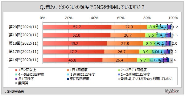 マイボイスコム株式会社(東京都千代田区、代表取締役社長:高井和久)は、20回目となる『SNSの利用』に関するインターネット調査を2024年11月1日~7日に実施しました。