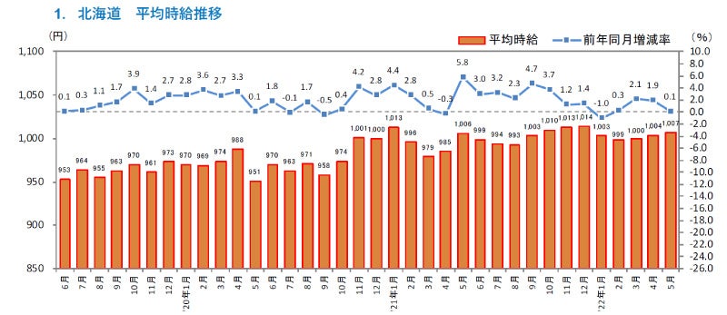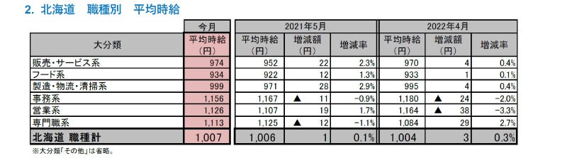[北海道版]2022年5月度 アルバイト・パート募集時平均時給調査 北海道の5月度平均時給は前年同月より1円増加の1,007円