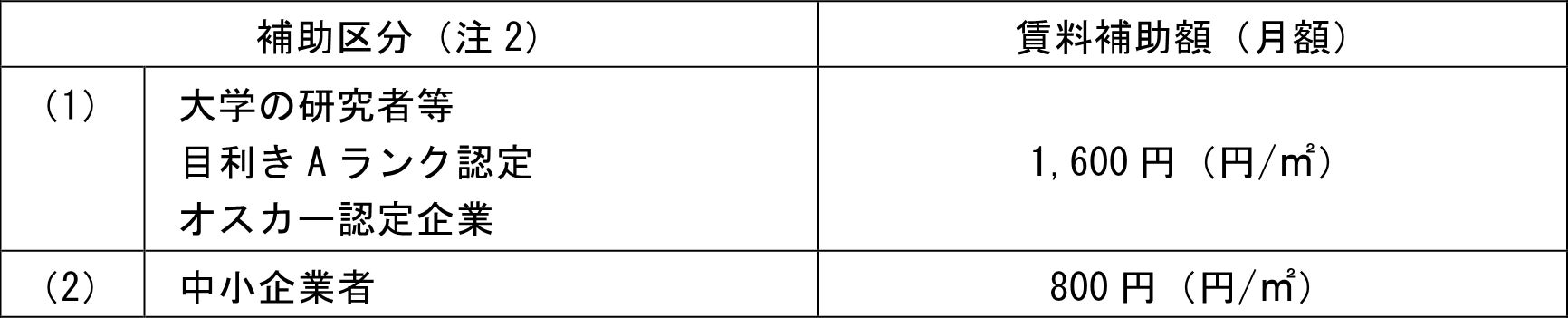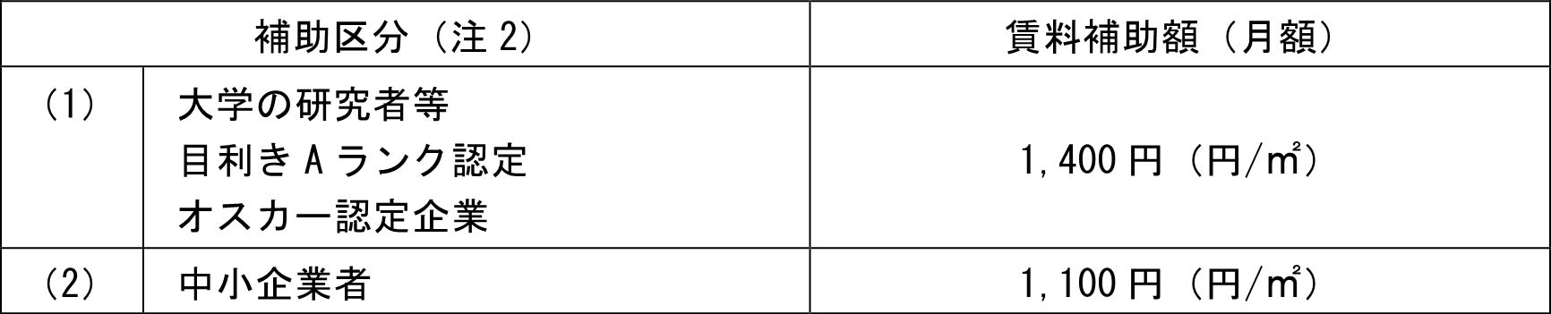 (注2)「目利きAランク認定」「オスカー認定企業」は、優良企業等を認定する京都市の制度です。補助区分の適用・交付期間・補助額等は、京都市新事業創出型事業施設活用推進事業補助金交付要綱に基づき決定されます。