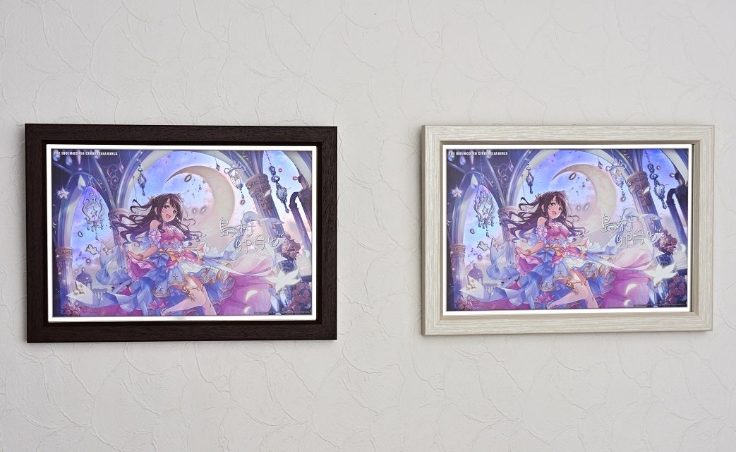 美しく輝くガラス製ミラーに奥行きのあるデザインを施し、ずっしりとした木枠で額装したプレミアムアイテム。積み重ねた努力と笑顔の魔法に包まれた、月夜の姫。はにかみ歌い踊る姿を描いた、彼女らしさが光る一枚が完成しました。