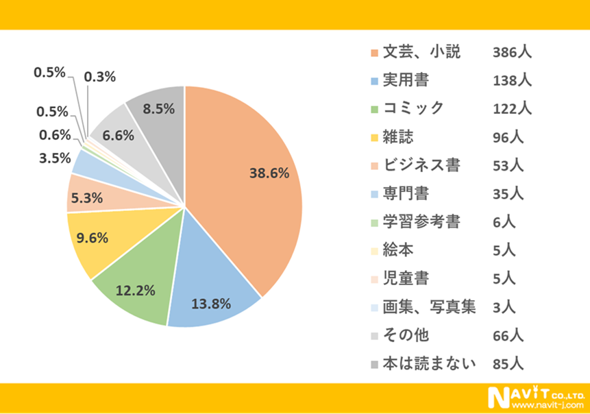 質問:読むことが一番多い本の種類は何ですか?(対象:1,000名)