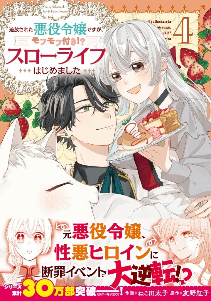 【あらすじ】 乙女ゲームの世界に悪役令嬢として転生してしまったアイリーンは、性悪ヒロイン・リリアーナの策略により、ゲームのシナリオ通りに学園を追放されてしまう。追放後は苺の名産地・マイベリー村に移住しカフェ店主として働くことに…。そんなある日、村の苺ハウスに危害を加えようとした一味の黒幕は、またしても、あのリリアーナだった! カーゴとルークは、リリアーナに制裁を加えるため学園の教師や生徒まで全関係者を村に召集し、断罪裁判をセッティング…! そこで自身の悪事を次々に詳らかにされたリリアーナは、すべてはアイリーンのせいだと主張し始めて――!?