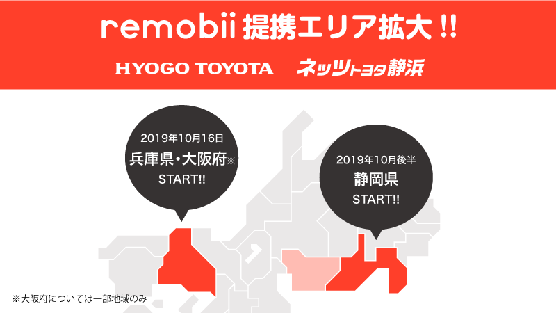 関西・静岡エリアへ拡大!『remobii (リモビー)』が兵庫トヨタ、ネッツトヨタ静浜と提携
