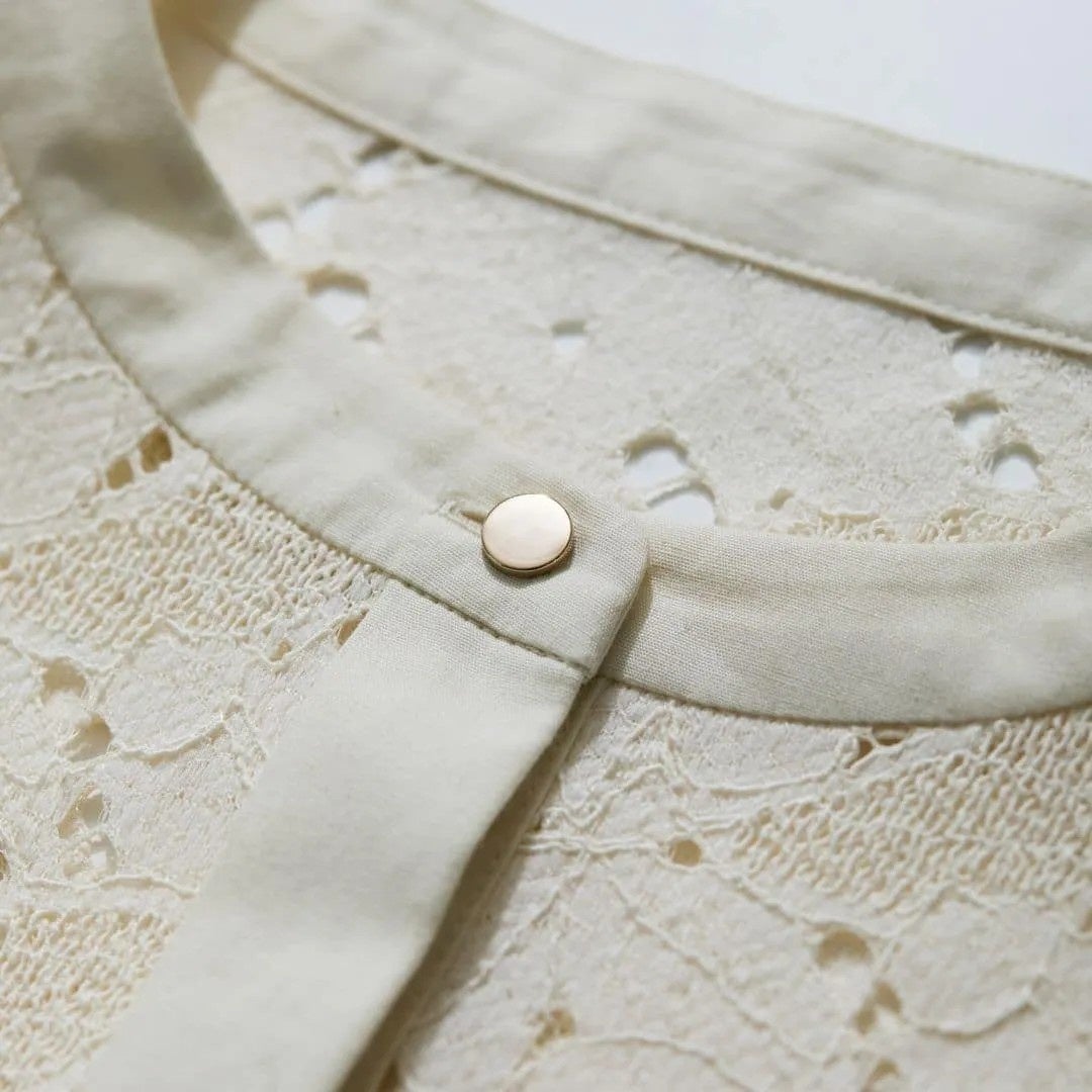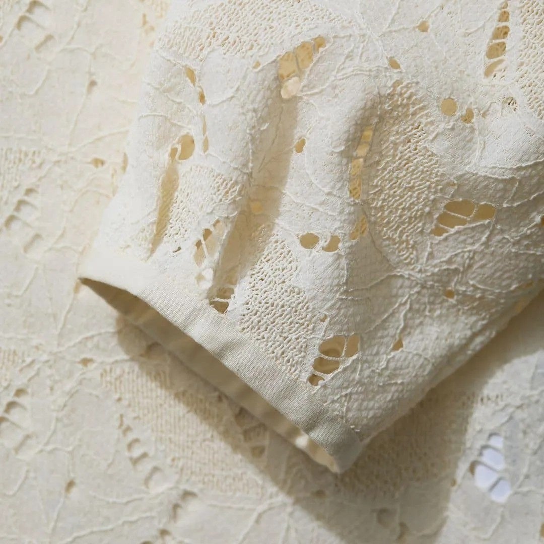 ブラウス以上、ジャケット未満。“エアリー”に羽織る。という新しいバランス。風をはらむような軽やかさと、どこかきちんとした佇まい。さっと重ねるだけで、いつもの装いに自然な奥行きが生まれます。繊細なリーフモチーフのレースは、やわらかな透け感と立体的な表情が魅力。光をほのかに通しながら、装いに涼やかなニュアンスを添えて。前を留めて端正に、ラフに羽織って抜け感を。日常から少し特別なシーンまで、軽やかにつないでくれる一枚です。
