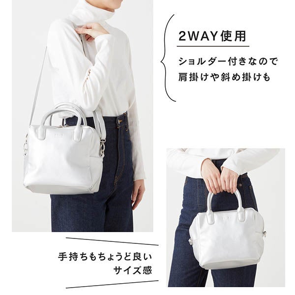 ショルダーストラップがついているため、手持ちと肩掛けの2WAYで楽しめます。
