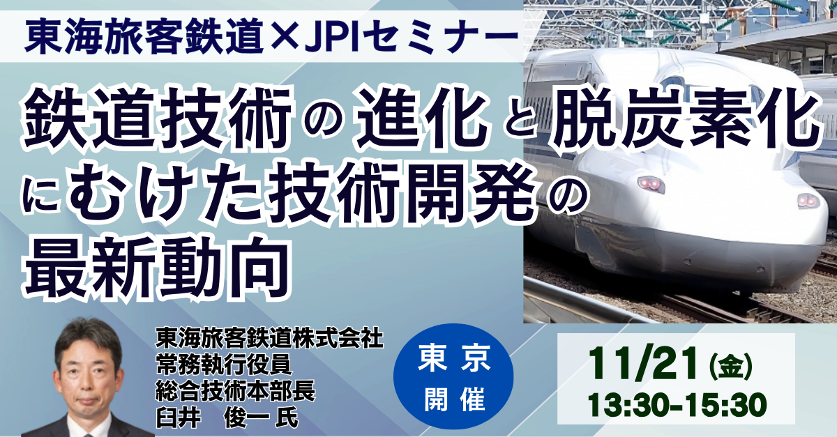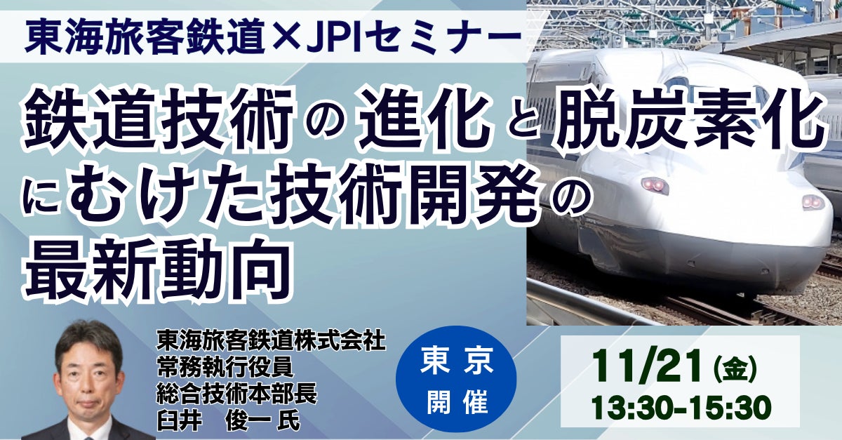 【JPIセミナー】東海旅客鉄道(株)「鉄道技術の進化と脱炭素化にむけた技術開発の最新動向」11月21日(金) <東京開催>