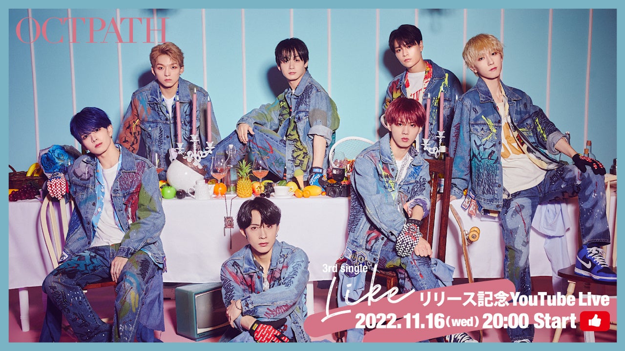今作のリリースを記念して、11月16日19:00よりLINE MUSICにて全世界のTHme(OCTPATHのファンネーム)と同時にリード曲「Like」を聴くリスニングパーティーを、20:00からはOCTPATH公式YouTubeチャンネルにて3rd single『Like』発売記念YouTube Liveを実施します。