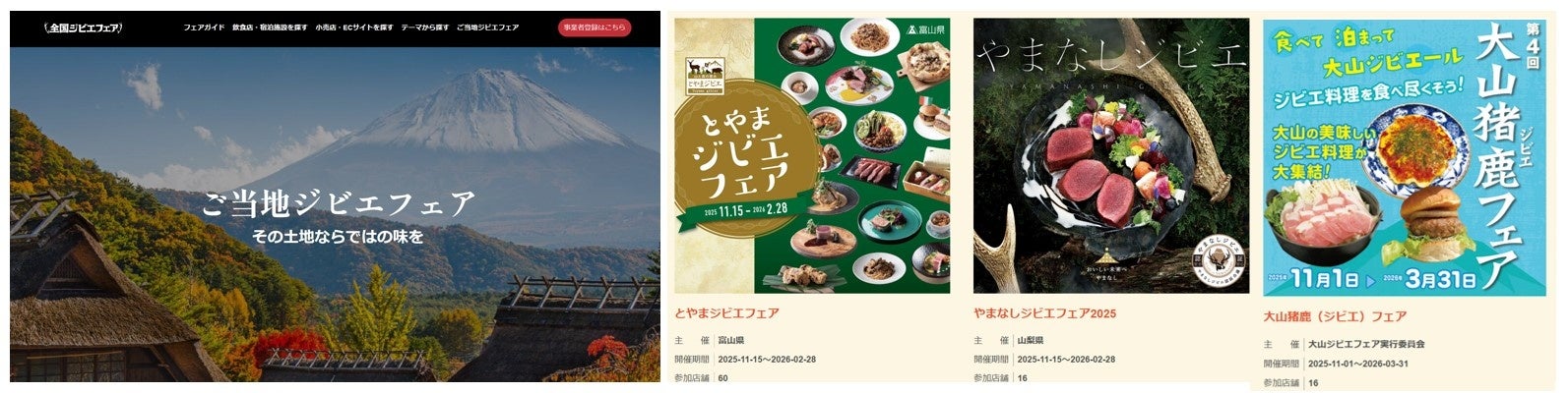 全国のジビエメニューを提供する飲食店やホテル、ジビエ等を販売する小売店、ECサイトが参加し国産ジビエの魅力を発信する「全国ジビエフェア」