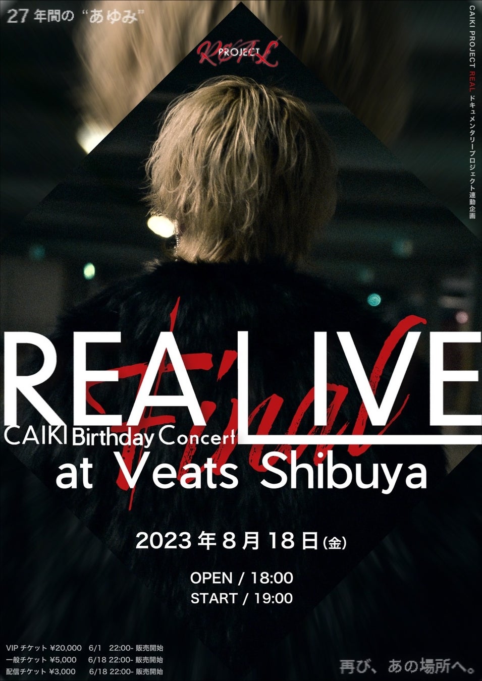 そんなCAIKIが自身の誕生日である2023年8月18日(金)にVeats Shibuyaにて「CAIKI Birthday Concert2023 REALIVE FINAL 27年間の"あゆみ"」の開催を発表。