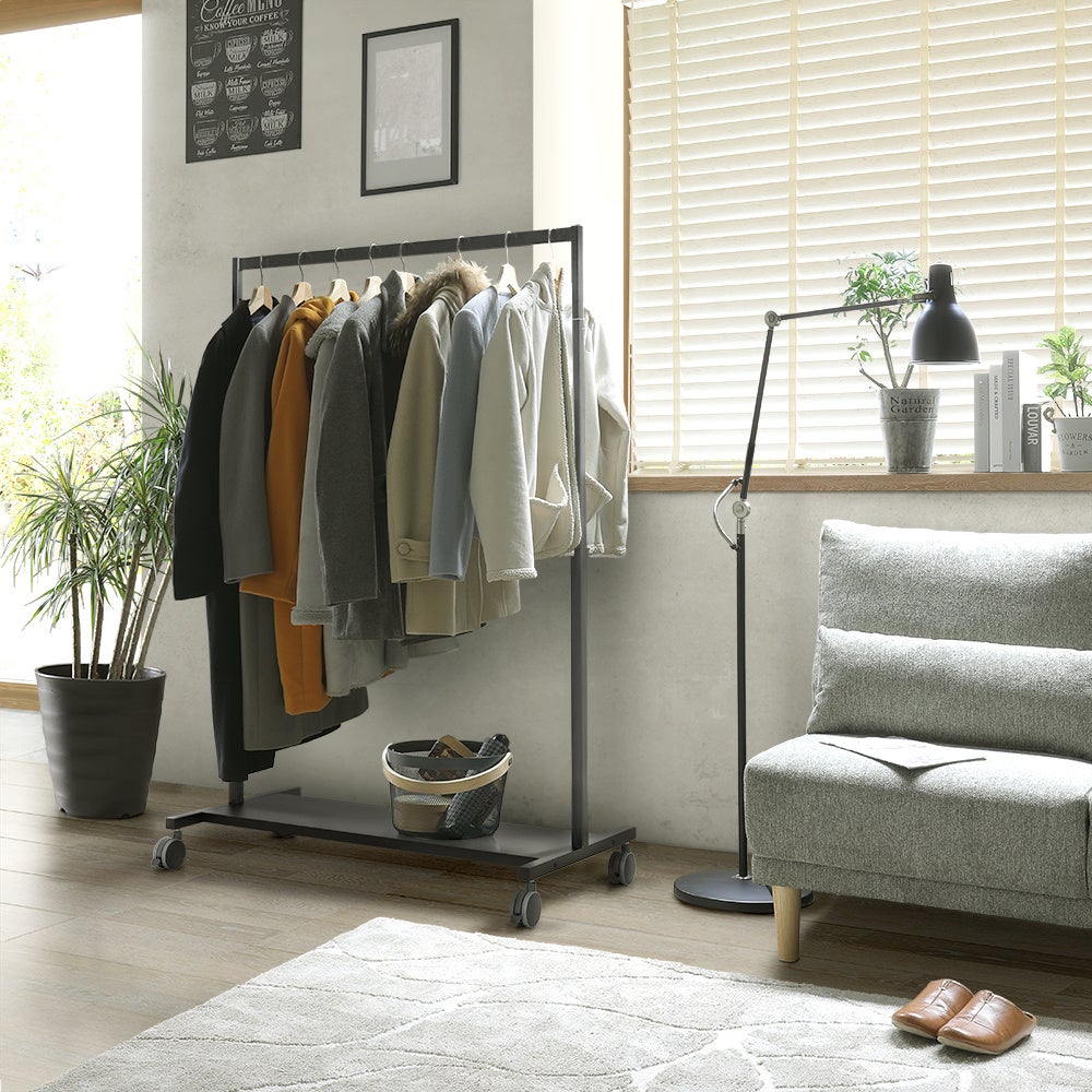 幅80・100・120の3サイズをご用意。高さ10cm間隔で5段階の調節が可能なので、ジャケットからロングコートやワンピースも収納可能。着丈が長い洋服や冬物の重たい服を掛けるコートハンガーとしてもおすすめです。