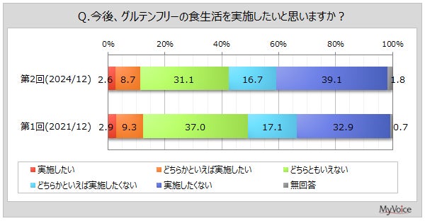 https://myel.myvoice.jp/products/detail.php?product_id=31704 ※上記設問の他に、「グルテンフリーの認知」「グルテンフリー製品の利用状況」なども聞いています。 |