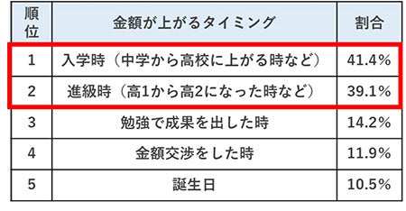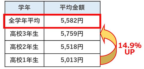 「高校生お小遣い実態調査2022」ひと月のお小遣い平均金額は「5,582円」、高校3年間で平均金額は14.9%UP 増額のタイミングは、1位“入学時”、2位“進級時”、3位“成績が良かった時”