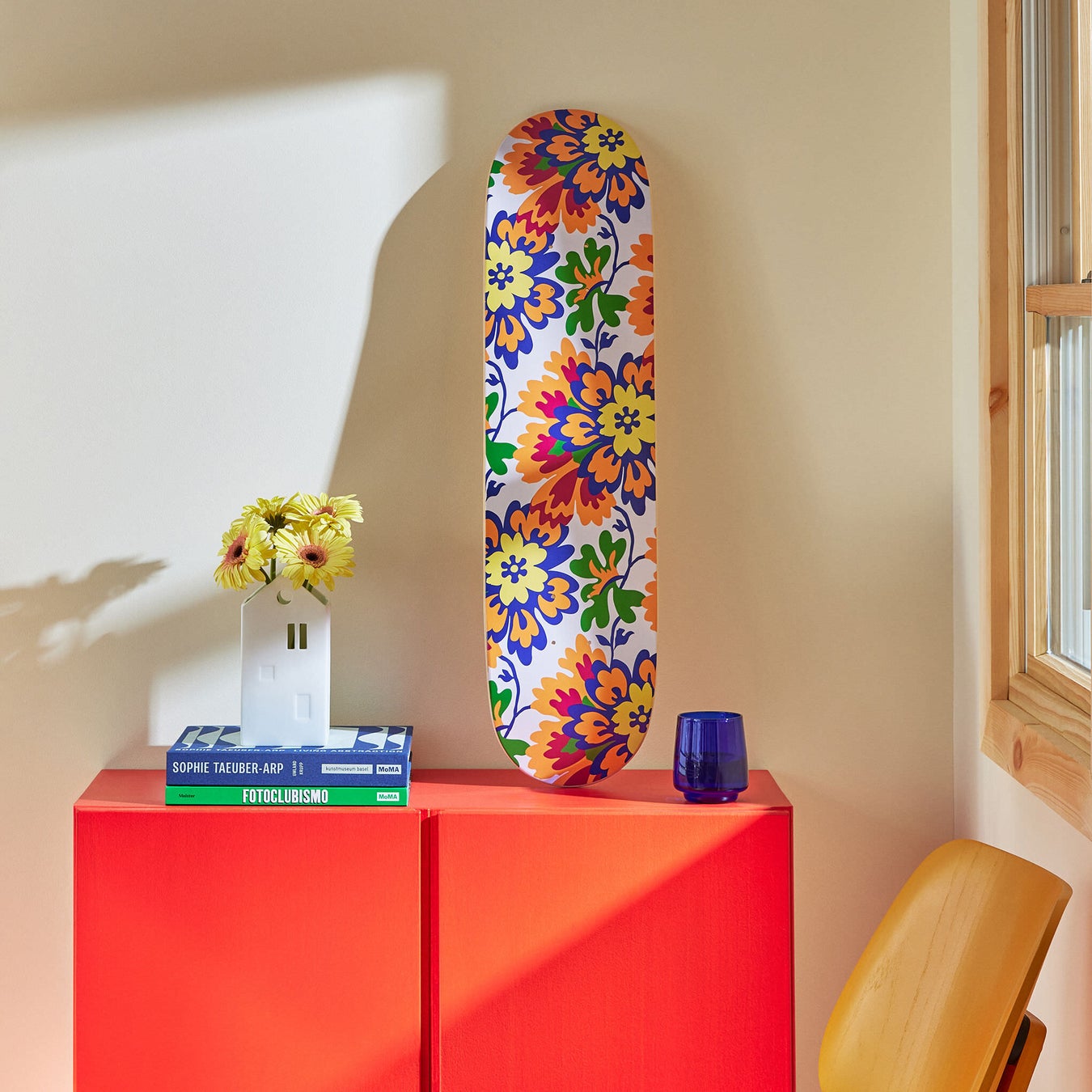 MoMAコレクションを代表するアーティスト、Mickalene Thomas(ミカリーン・トーマス)の作品『Color Flower Pattern』(2024年)が再現されたスケートボード。トーマスは20年間、自身の作品を通して有色人種の女性と彼女たちの視線が放つパワーを作品で称賛してきました。同作品は、トーマスの子どもの頃の記憶から生まれました。