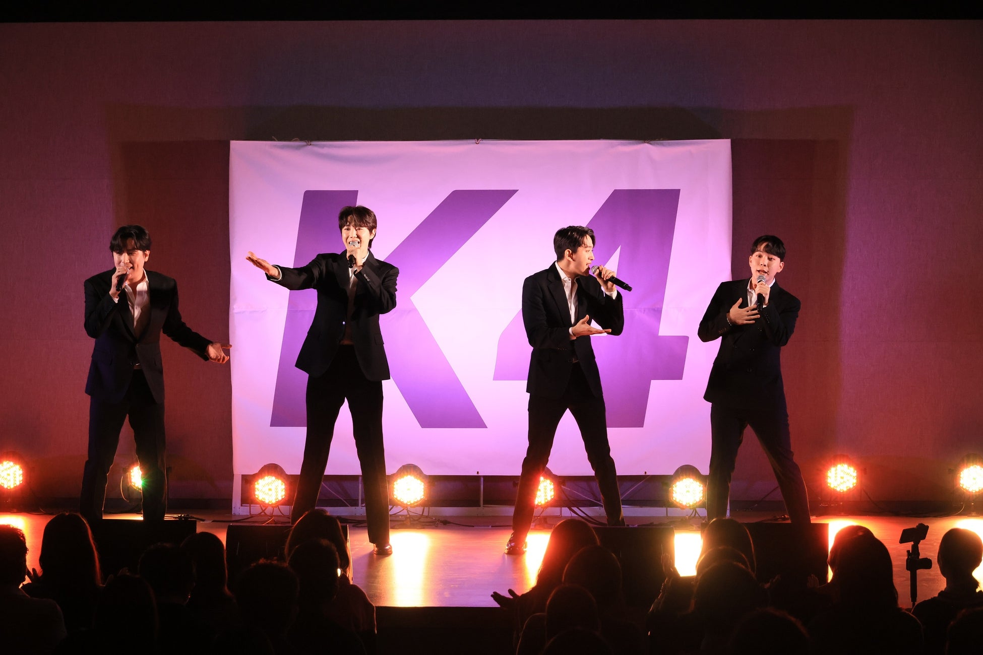 日本における韓国エンタメの第一人者である古家正亨氏がMCを務め、紹介VTRのあと登場したK4の4人。1曲目は韓国ドラマ「主君の太陽」からミディアムナンバー「Touch Love」、続いてドラマ「花郎<ファラン>」から壮大なバラード「Our Tears」と、韓ドラファンにはたまらない楽曲を、極上のハーモニーで聴かせる。続けて、ドラマ「花より男子」から「Stand By Me」のカバーを披露。オリジナルはSHINeeが歌ったPOPなナンバーを完全にK4風にリメイク。そして、「韓流の原点となった一曲です」と日本語での紹介から「最初から今まで/冬のソナタ」を披露。韓国ドラマの金字塔的作品の主題歌を、壮麗なコーラスアレンジで全く新しい一曲に仕上げた。次に、「日本でも韓国でも人気の曲です。」と紹介された一曲は、オリジナルは中島美嘉の永遠の名曲「雪の華」。韓国ではドラマ「ごめん、愛してる」の中で韓国語でカバーされ大ヒットした。「雪の華」がK4の作品に収録されることは、このライブで初めて発表された。しかも、CDでは全編韓国語詞で収録されているところ、このステージでは2番から日本語詞というスペシャルバージョンで披露された。ここで、MCの古家が再び登場。コーラスアレンジと日本語の勉強のためにメンバーが自ら選曲した「上を向いて歩こう」をアカペラで披露。完璧なハーモニーと共に歌詞も十分に伝わる、心に響く歌として仕上がっていた。ラストには、韓国でのデビュー曲で、日本人にも親しみやすく中毒性の高いラテン調の一曲「Love Storm」を披露。カバーのみならずオリジナル曲での魅力も存分に発揮した。
