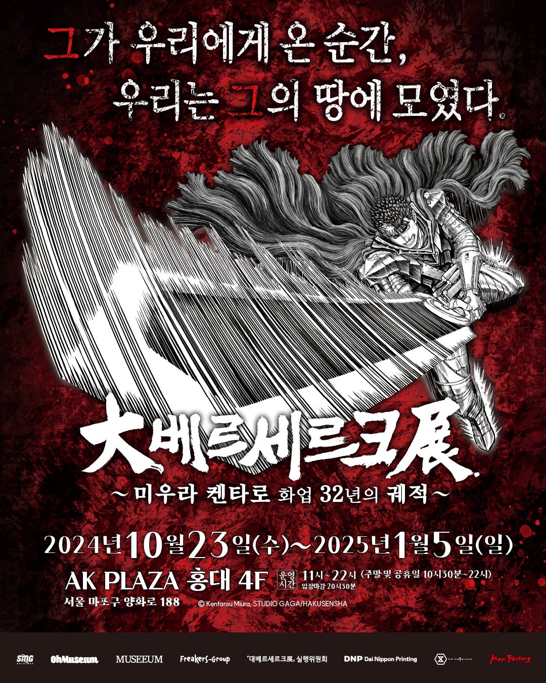 2021年9月開幕の東京・池袋会場を皮切りに、約3年かけて日本全国を巡回してきた「大ベルセルク展〜三浦建太郎 画業32年の軌跡〜」が、2024年10月にいよいよ韓国・ソウルでの開催が決定!
