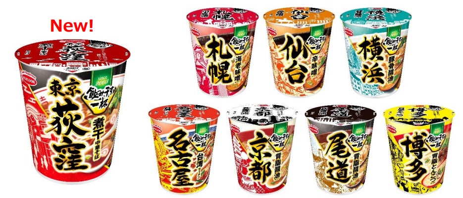 めんへの味付けを工夫しスープとの相性を良くすることで更に磨きをかけました。また、新たな定番として、「東京荻窪 煮干中華そば」を発売します。それぞれの観光名所のイラストを大きく訴求した旅情や郷愁感のある新パッケージへリニューアルしました。
