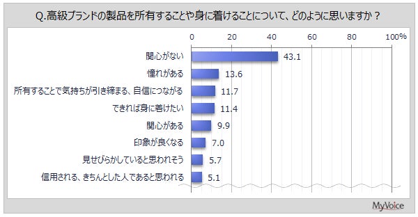 高級ブランド品を所有することや身に着けることについて、どのように思うかを聞きました(複数回答)。