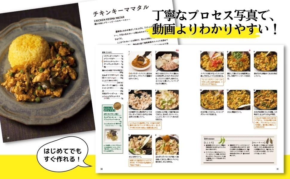 発汗作用や消化促進・食欲増進効果のある本格スパイスカレーが家庭で楽しめるレシピが満載。カレーのほか、ビリヤニやアラカルト、デザートのレシピも含め、全56品のインド料理が作れます。すべてのレシピに詳しい工程写真を掲載しているので、初めてでもすぐに作れる安心の一冊。ぜひ一度、ご家庭でプロの味を再現してみて下さい!