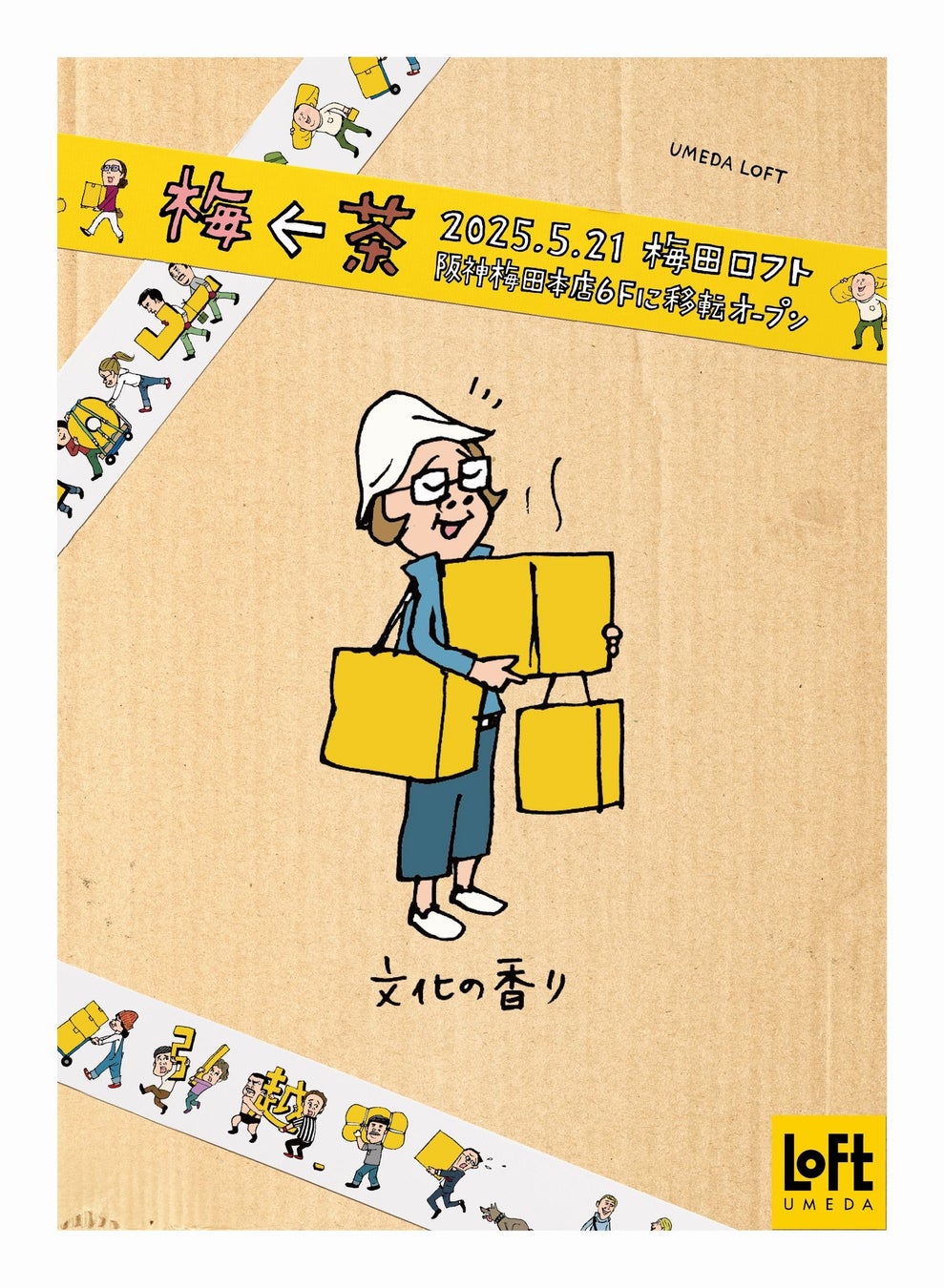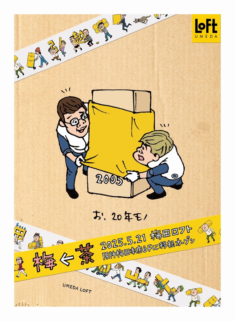 今までつちかった梅田・茶屋町の文化を移転によって失うことなく、梅田ロフトの魅力がつまった「モノ、コト、イミ」を丸ごと引っ越しするプロジェクトを立ち上げイベントを実施、また35周年の感謝の気持ちを込めたアーカイブ展も開催いたします。2011年に梅田ロフトが開催した梅茶人が主役の「梅茶でチャチャチャ」※1プロモーションを復活、梅田ロフト引越プロジェクト「梅←茶五+三次(うめちゃごぷらすさんつぎ)」で移転オープン自体を楽しめる企画を予定しています。