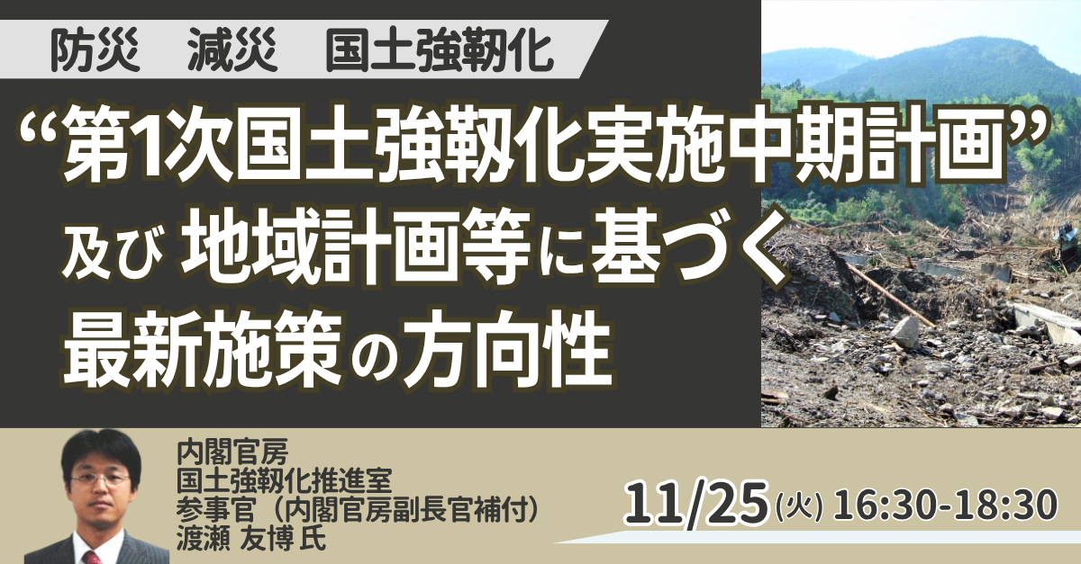 【JPIセミナー】内閣官房「”第1次国土強靱化実施中期計画” 及び地域計画等に基づく最新施策の方向性」11月25日(火)開催