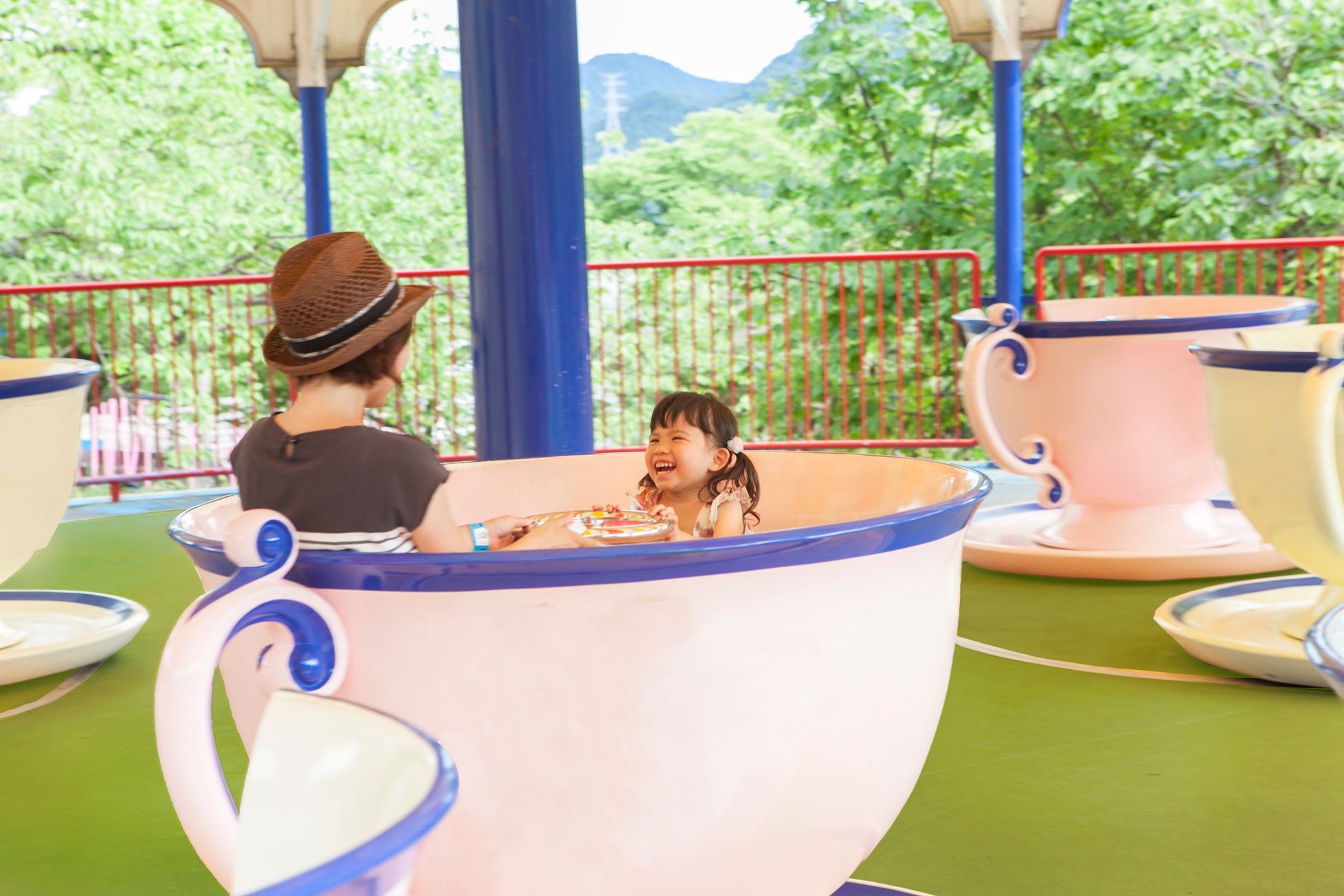カップ中央のハンドルを回すとティーカップがクルクル回るアトラクションです。カップは、全3種類のデザインにデコレーションされます。どれもカラフルでかわいらしく、どのカップに乗るか迷ってしまいます。