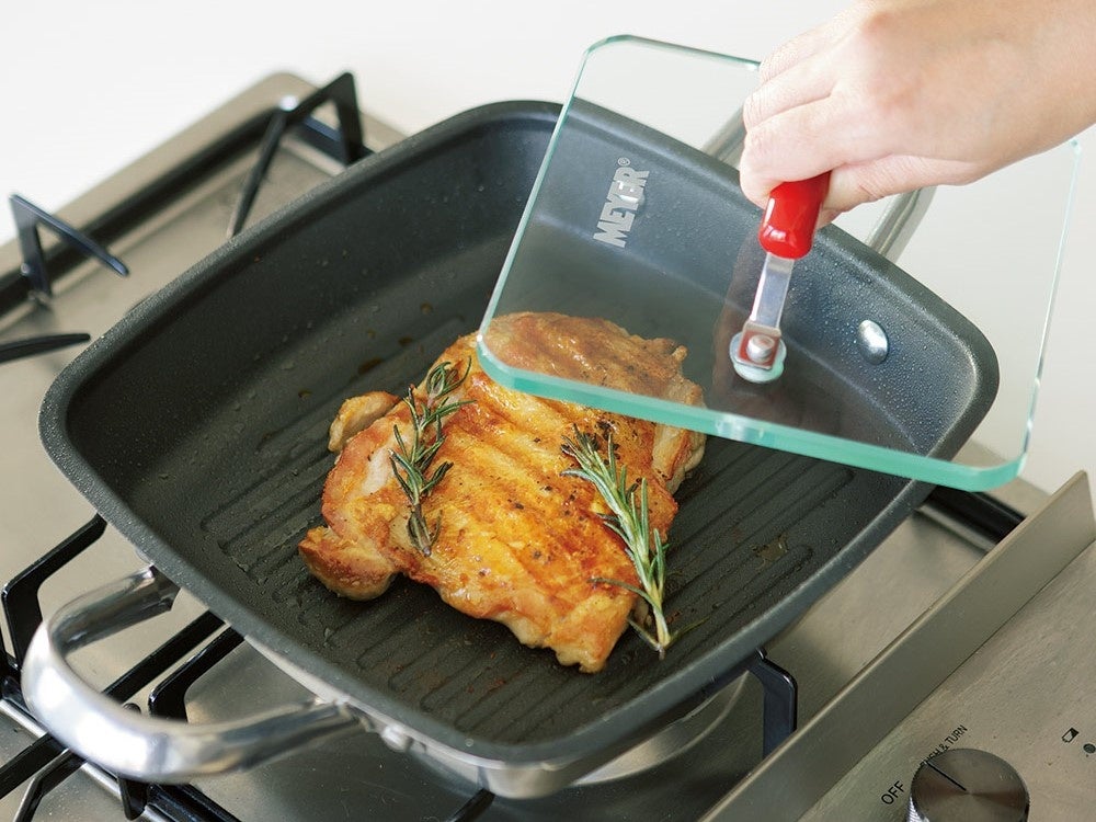 ・スクエアグリルパン用ガラスふた…約幅25奥行25高さ8.5cm・重さ約685g