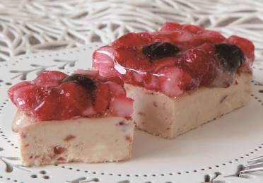 濃厚なストロベリーフロマージュテリーヌの上にベリーをたっぷり載せた豪華な一品。