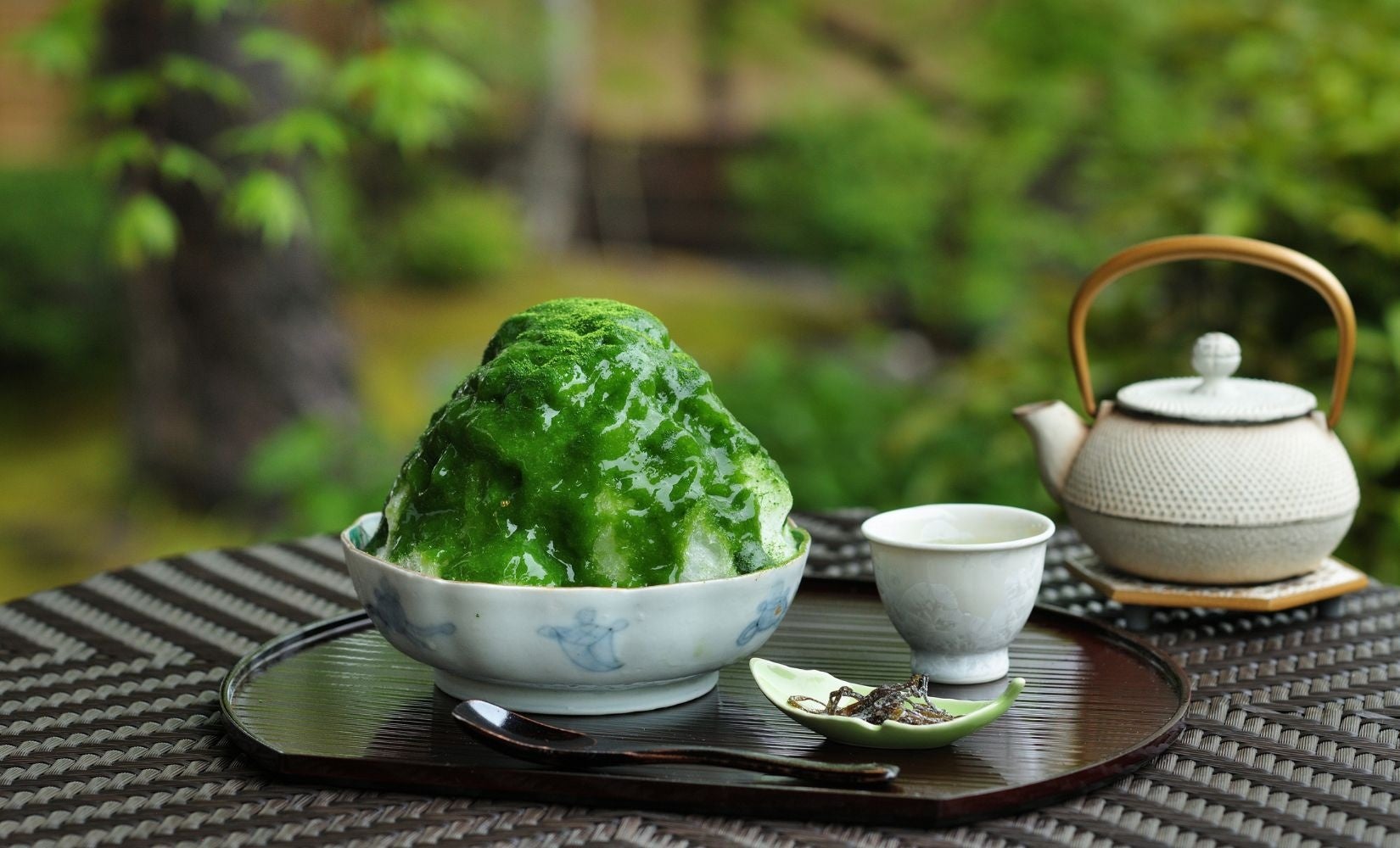 清らかな保津川の流れと眩い緑に染まった嵐山の情景を望む「茶寮 八翠」にて、夏の涼やかな甘味をご堪能ください。