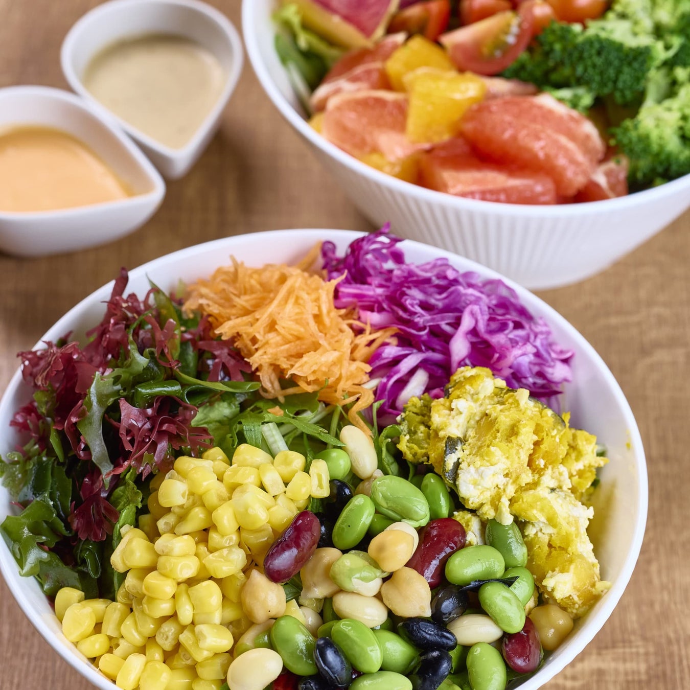 野菜のビタミンだけでなく、海藻のミネラルや豆のたんぱく質もふんだんに採れるサラダ。