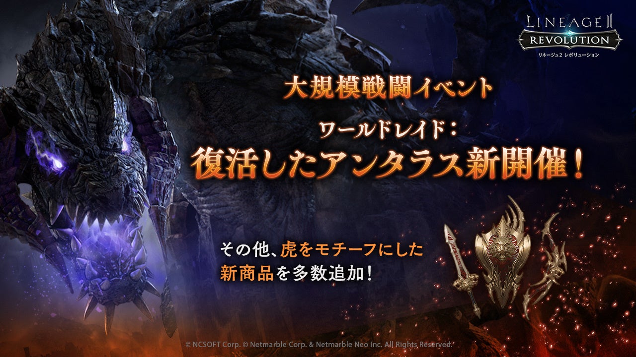 『リネージュ2 レボリューション』大規模戦闘イベント「ワールドレイド:復活したアンタラス」新開催!虎をモチーフにした新商品を多数追加