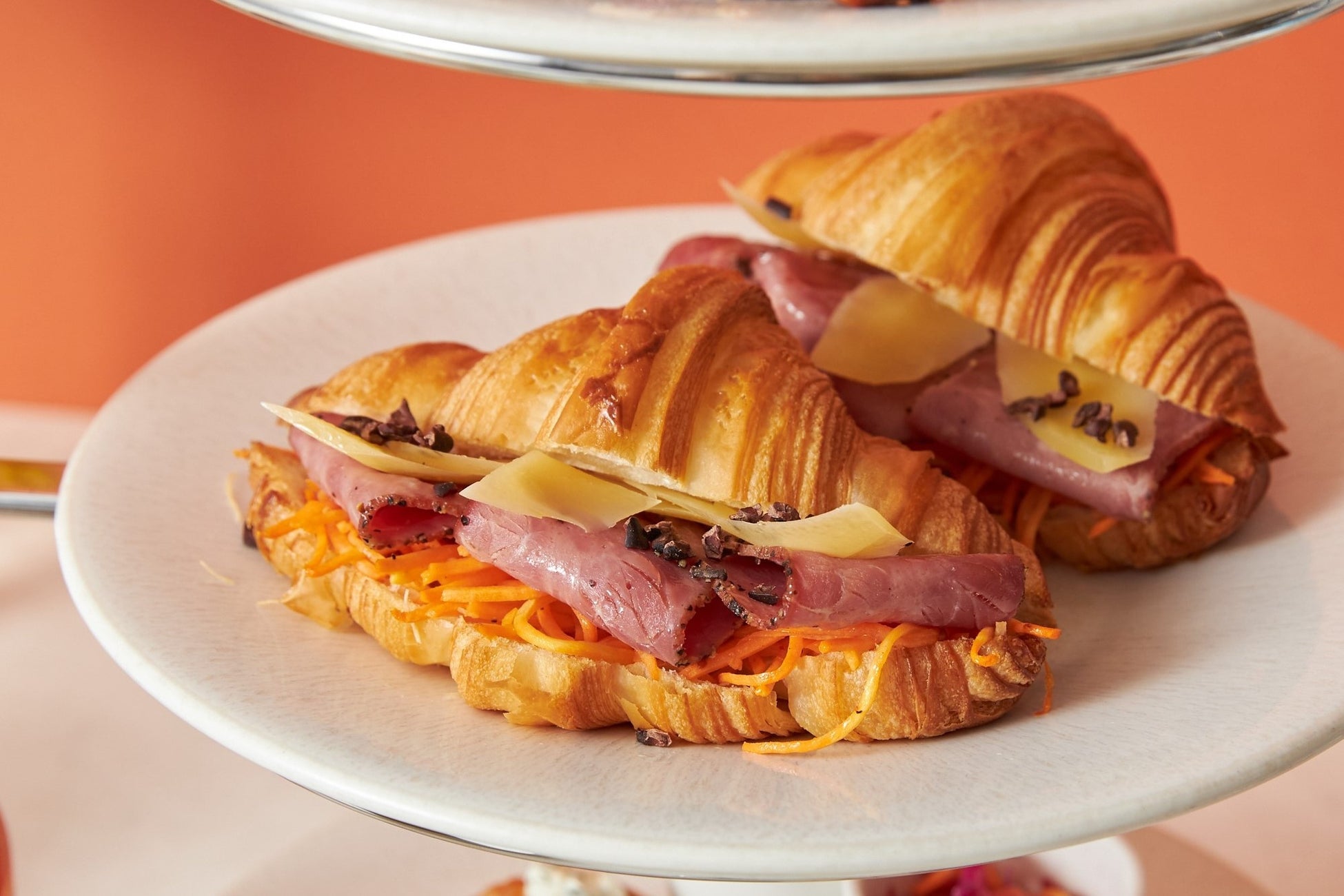 中段には「RITUEL」で人気のクロワッサンにパストラミビーフと自家製キャロットラペとコンテチーズを挟み、ソースには特製のマロンソースを使用しています。口に入れた瞬間に味わいが広がるクロワッサンサンドをご賞味ください。