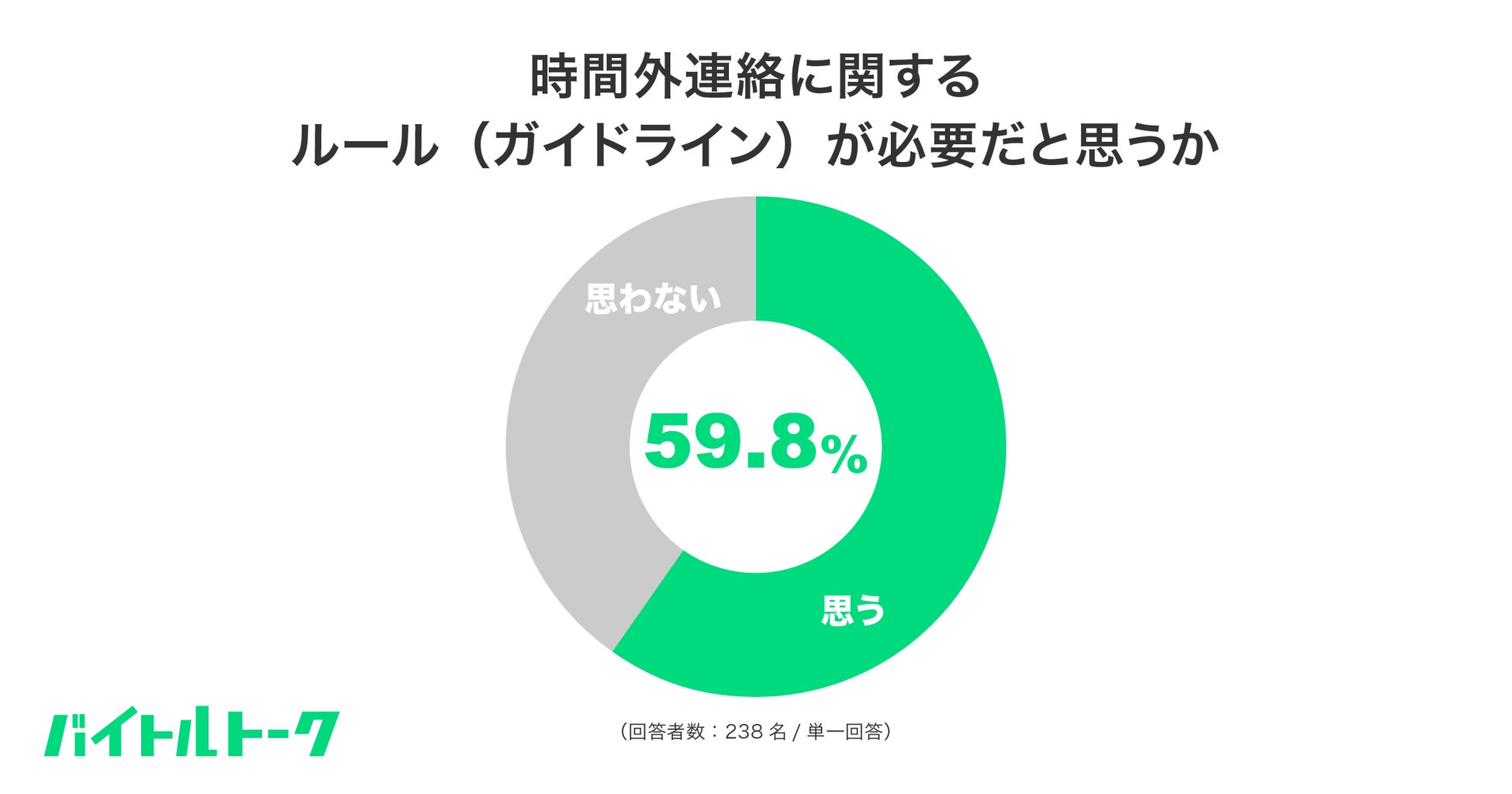 調査の結果、アルバイト従業員の59.8%が時間外連絡に関するルールの必要性を実感していることが判明しました。また、私用SNSを使用しない専用ツールの導入については、49.2%が「応募の決め手や安心材料になる」と回答しています。