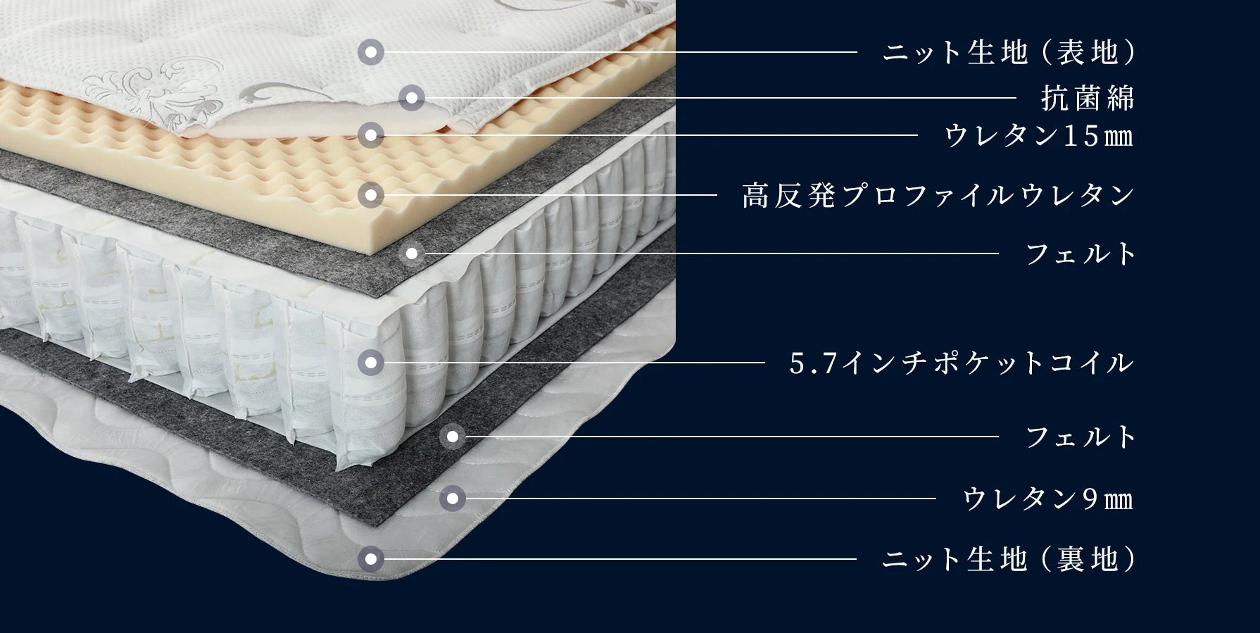 それぞれの層が織り成すこだわりの構造、そのすべてが良質な眠りに誘います。