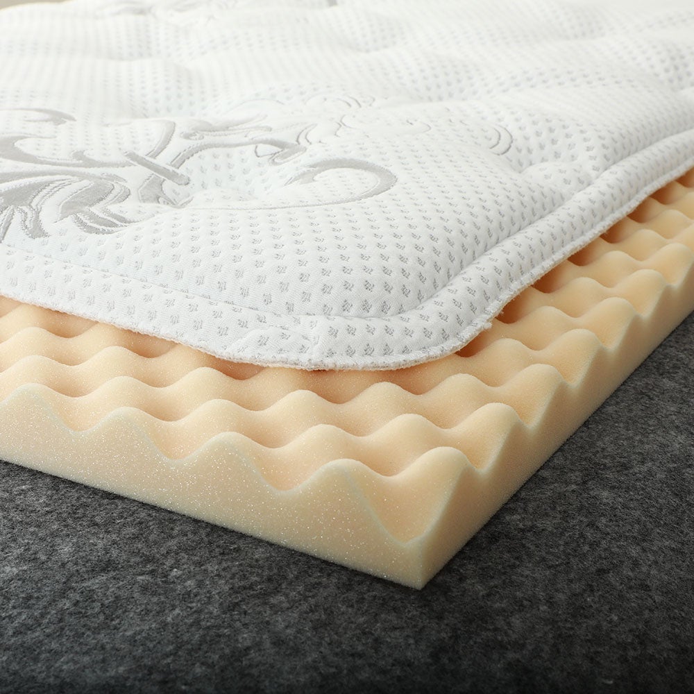 凹凸にカットしたプロファイルウレタン層は40mmの厚みのある高反発の国産ウレタンフォームを使用。 点で体圧を受け止めることで、寝返りが打ちやすく、寝姿勢も整いやすくなります。また、凹凸状になっているため通気性が良く、密度の高いウレタンを使用しているためへたりにくく長期間ご使用頂けます。