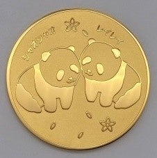 純金製 双子ちゃんパンダ誕生記念メダル(大/100g 直径約5.0cm)税込 1,100,000円、(小/25g 直径約3.0cm)税込 330,000円/本館7階 宝飾売場