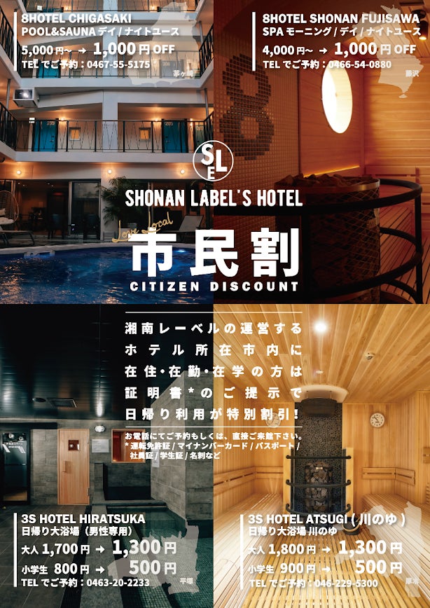 湘南レーベル株式会社は、運営する4つのホテル(茅ヶ崎市・藤沢市・平塚市・厚木市)で「市民割」を開始いたします。