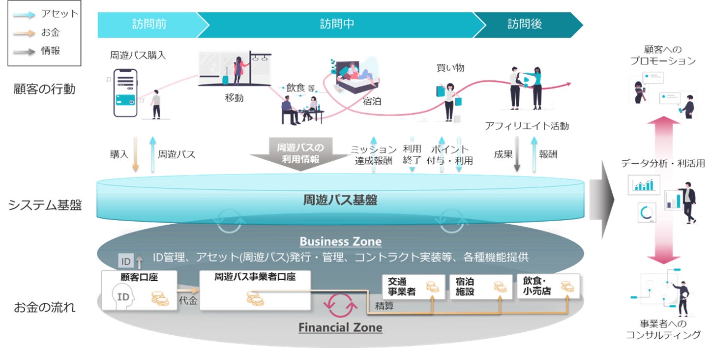 デジタル通貨DCJPYを活用した周遊パスのイメージ図