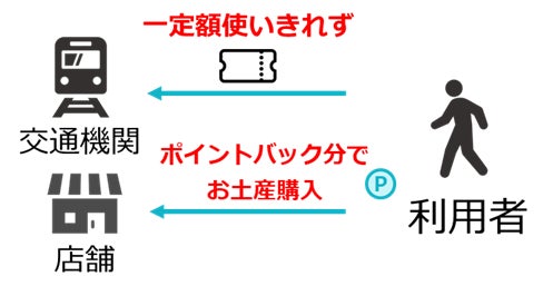 使い切れなかった差額は利用者に自動的にポイントバックでき、利用者はそのポイントを使ってお土産などの購入ができる