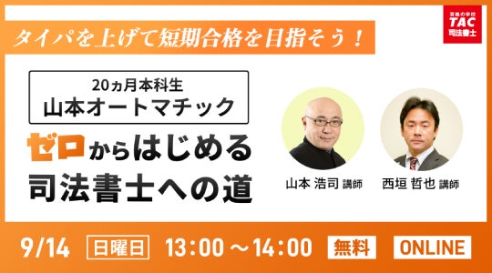 【TAC司法書士講座】オンラインセミナー「<山本オートマチック 20ヵ月本科生>でゼロからはじめる司法書士への道!【2025年秋版】」開催のお知らせ
