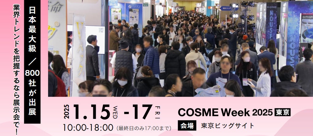 COSME Week 東京 2025 会期:2025年1月15日(水)~17日(金) 会場:東京ビッグサイト ※BtoB向けの商談展示会です