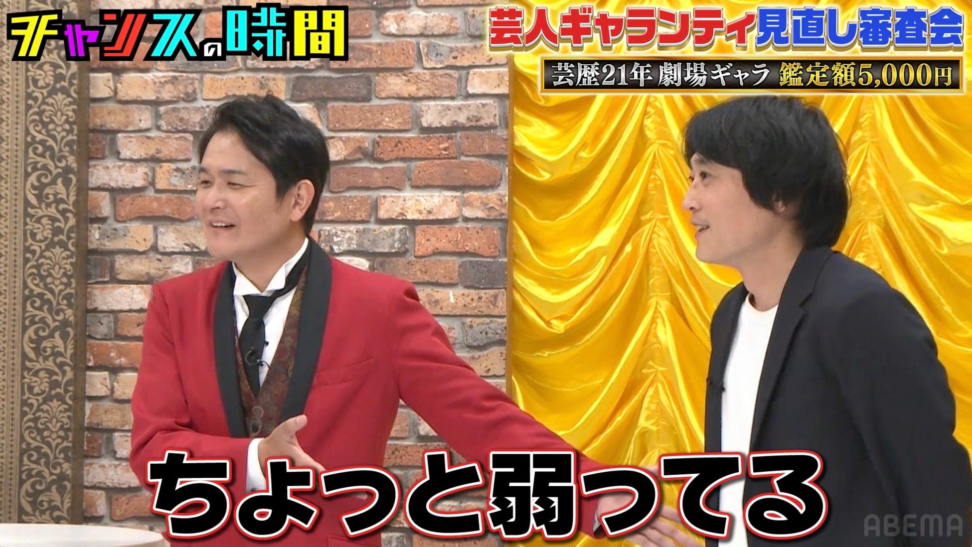 番組終盤には、芸歴21年目、フルーツポンチの村上さんが明かした“劇場ギャラ”に後輩芸人さえも愕然となることに。最後の依頼人としてスタジオに登場するやいなや「待ちすぎて立ちくらみが...」とよろめき、笑いと心配を誘った村上さん。「今21年目なんですけど1度もギャラ交渉していない」と語ると、「それでも出番がもらえるならと思っていたら、ここ最近みんなのギャラがいいらしいと聞いて...」と不安を打ち明けます。さらに「先輩にはなっちゃってるので、何ステかあると合間に飯とか行く」「奢らないわけにはいかないってなるんで、基本的に腹の減ってないフリをしてる」と告白し、笑いを誘いました。そして、そんな村上さんが本人評価額「1万円」と書いたフリップを掲げると芸人一同が驚愕。ノブさんは思わず「1万円よりもらってないということですね?」と確認し、大悟さんも「1回も上げてないなら最低額やろ?」と困惑しました。その後、「吉本の芸歴とかの感覚で(適正価格を)1回入れていい?」「リアルな額で」という大悟さんを筆頭に審査員たちは協議を始めますが...。まさかの鑑定結果にノブさんも「これは安いですよ」と声を上げますが、最終的には「正直、これぐらいのギャラならちょうどいただいているんで。適正価格で出てたなと...」と納得した村上さん。スタジオ爆笑の中、ノブさんは「ちょっと弱ってる」と村上さんを支え、大悟さんも「とにかくレバー食べよう」と励ましの言葉をかけました。