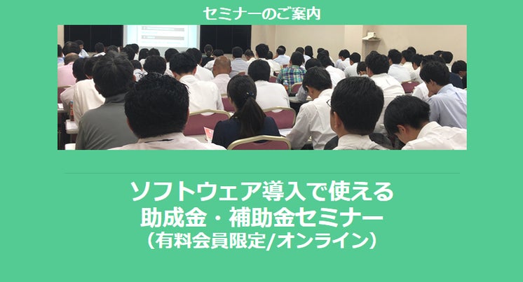 【8/13より】「ソフトウェア導入で使える助成金・補助金セミナー」の配信を開始しました(オンライン/有料会員限定)【助成金なう】