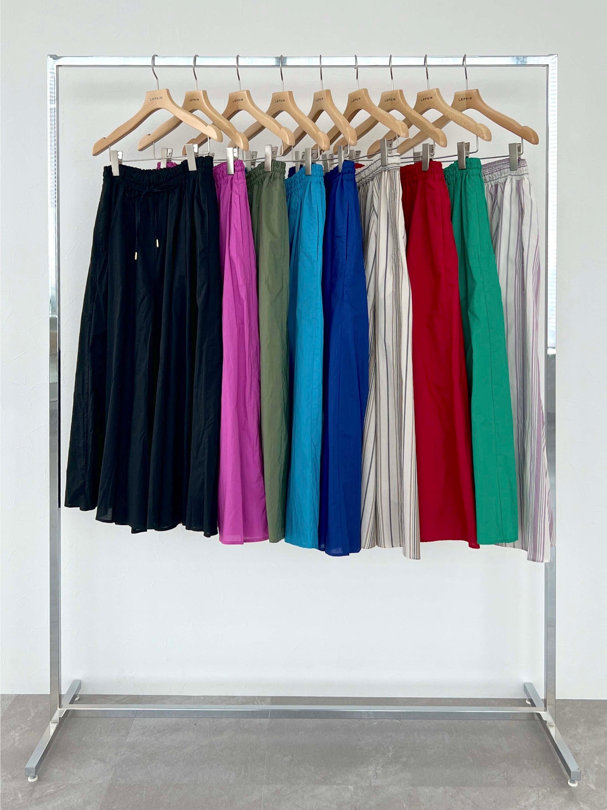 脚さばきのいいスカーチョシルエットで歩くたびに揺れる裾がとても女性らしいアイテム。発色のいいカラーが夏に映えて、コーディネートの主役ぴったりです。ウエスト回りにギャザーを細かく入れたことで広がりにくいのがポイント。