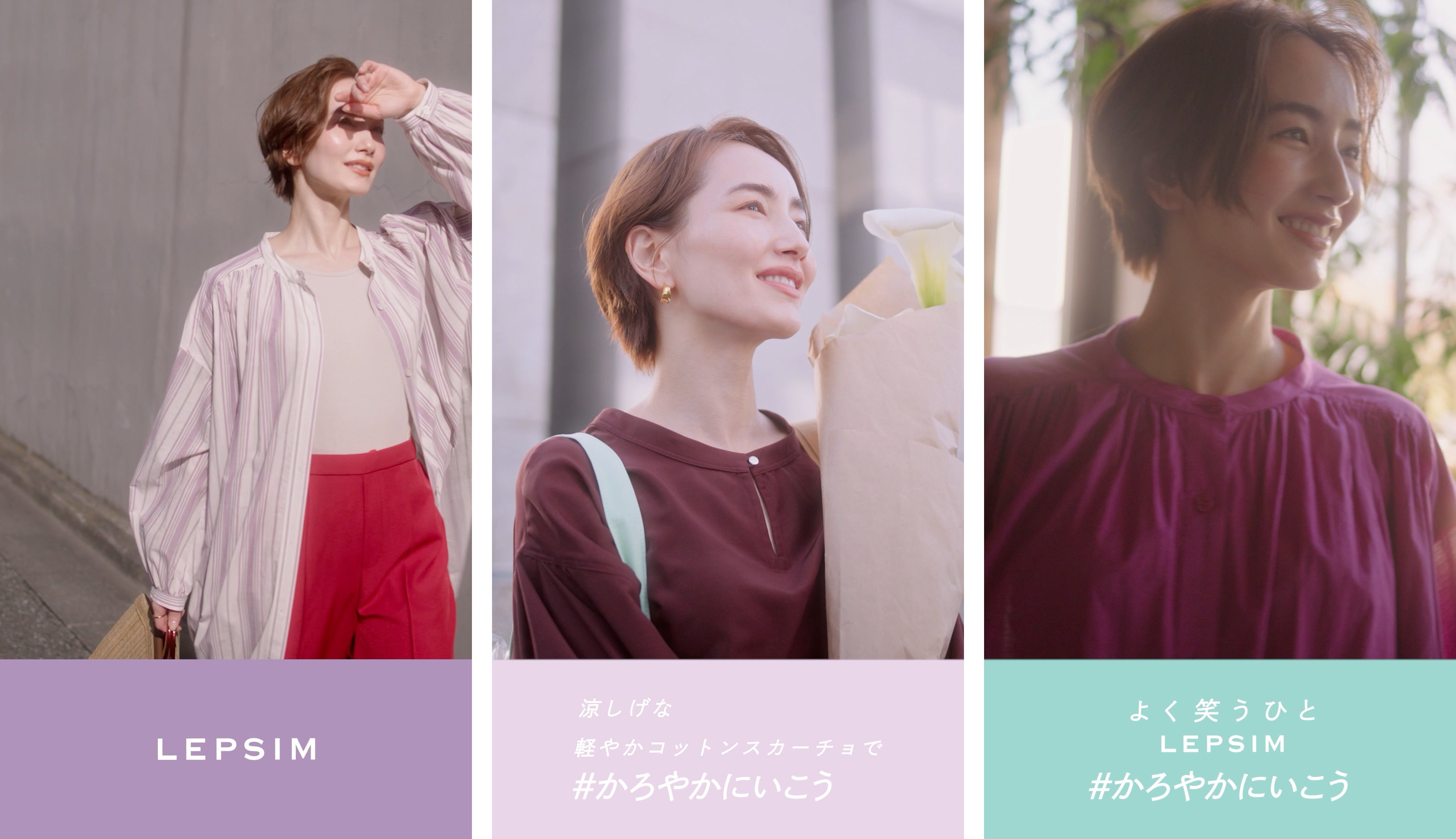 レプシィムは2019年春より、ブランドのコアターゲットを40代以上の女性に設定し、様々なライフシーンを過ごす大人女性の笑顔によく映える「清潔感と品のあるシンプルさ」を持ったアイテムをラインアップしています。レプシィムの洋服をまとえば、ふらっとお出かけしたくなる。誰かに会いに行きたくなる。毎日を思いっきり楽しめる。そんなメッセージを込めて『よく笑うひと』というタグラインをもとにプロモーションを展開しています。