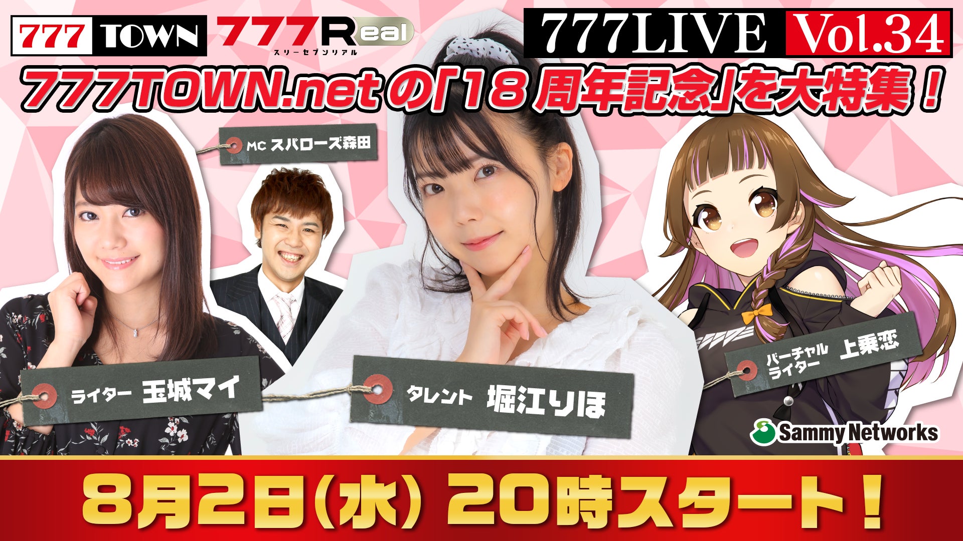 株式会社サミーネットワークスは、ぱちんこ・パチスロがパソコン、スマホで打てる「777TOWN(スリーセブンタウン)」、無料で遊んで豪華景品がもらえるスマホ向けサービス「777Real(スリーセブンリアル)」の生放送を、2023年8月2日(水)20時から配信いたします。