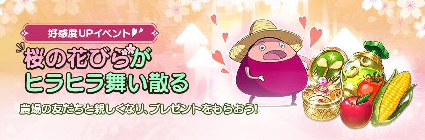 イベント期間中は、農作物を収穫すると、イマージェンの森用オブジェの引換券などと交換できる「桜の花びら」を獲得できます。