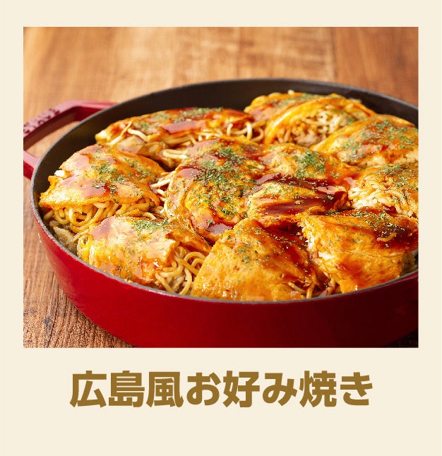 シャキシャキ食感の千切りキャベツともちもち麺を薄く焼き上げた生地で包んだボリューム満点の仕上がり。濃厚お好みソースをたっぷりかけてお召し上がりください。