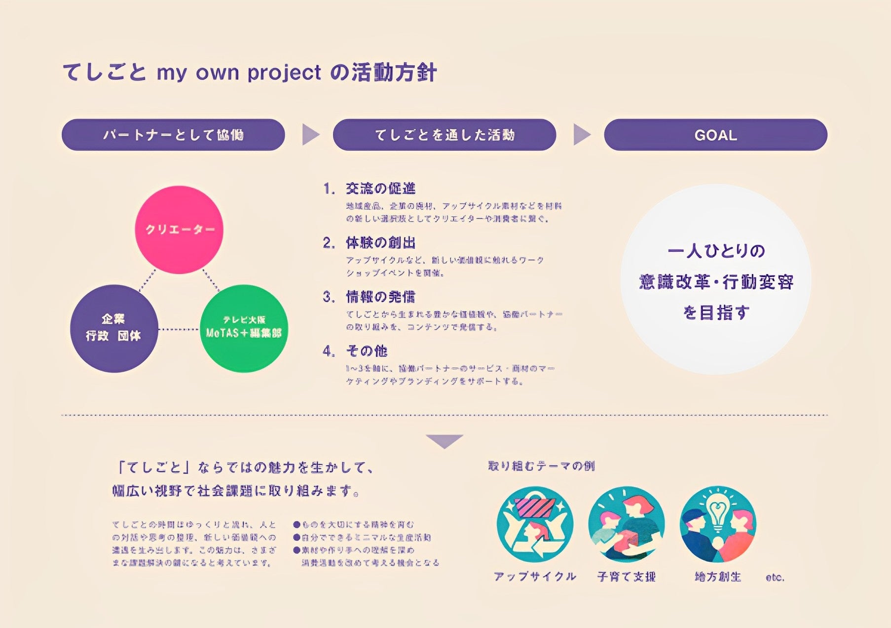 テレビ大阪株式会社が運営する、ハンドメイドに特化したWEBサイトとYouTubeチャンネル「MeTAS+(ミタス)」では、一方通行の生産・消費だけでは終わらない、新しい視点でのものづくりを進めるため、「てしごと my own project」を今年9月より、スタートしました。