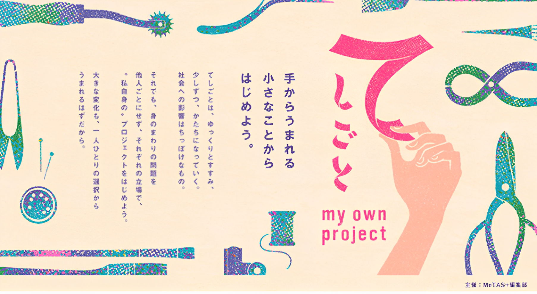 「てしごと my own project」では、「MeTAS+」の運営で得たクリエイターとのネットワーク、ものづくりのアイデアなど、「てしごと」が持つ魅力や可能性を活かしながら、身のまわりで起きている課題に対して、解決の糸口を探っていきます。