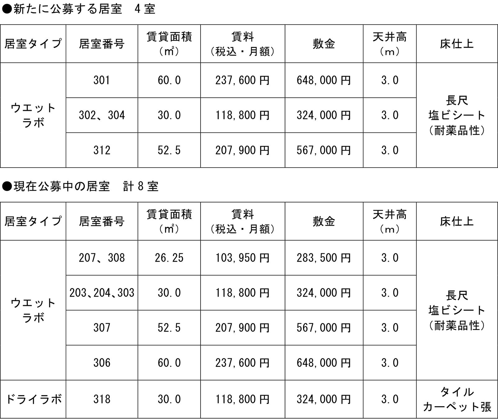 ・301号室、302号室、304号室、312号室については、9月5日(木曜)から9月17日(火曜)まで受付を行います。但し、上記期間中に申込みがなかった場合については、順次、受付を行います。